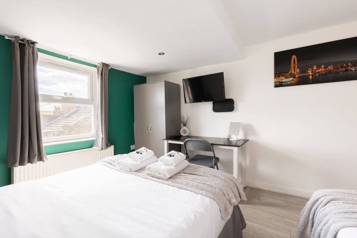 Enjoy this light-filled 3-bedroom apartment in vibrant Kilburn, perfect for families, friends, or colleagues. Equipped with a modern kitchen, sleek bathroom, and versatile workspaces in each bedroom, it provides a comfortable and practical base. Just a 12-minute walk from Queen’s Park Station (Zone 2), you’ll find excellent connections to central London, plus plenty of local shops, cafés, and amenities right on your doorstep.