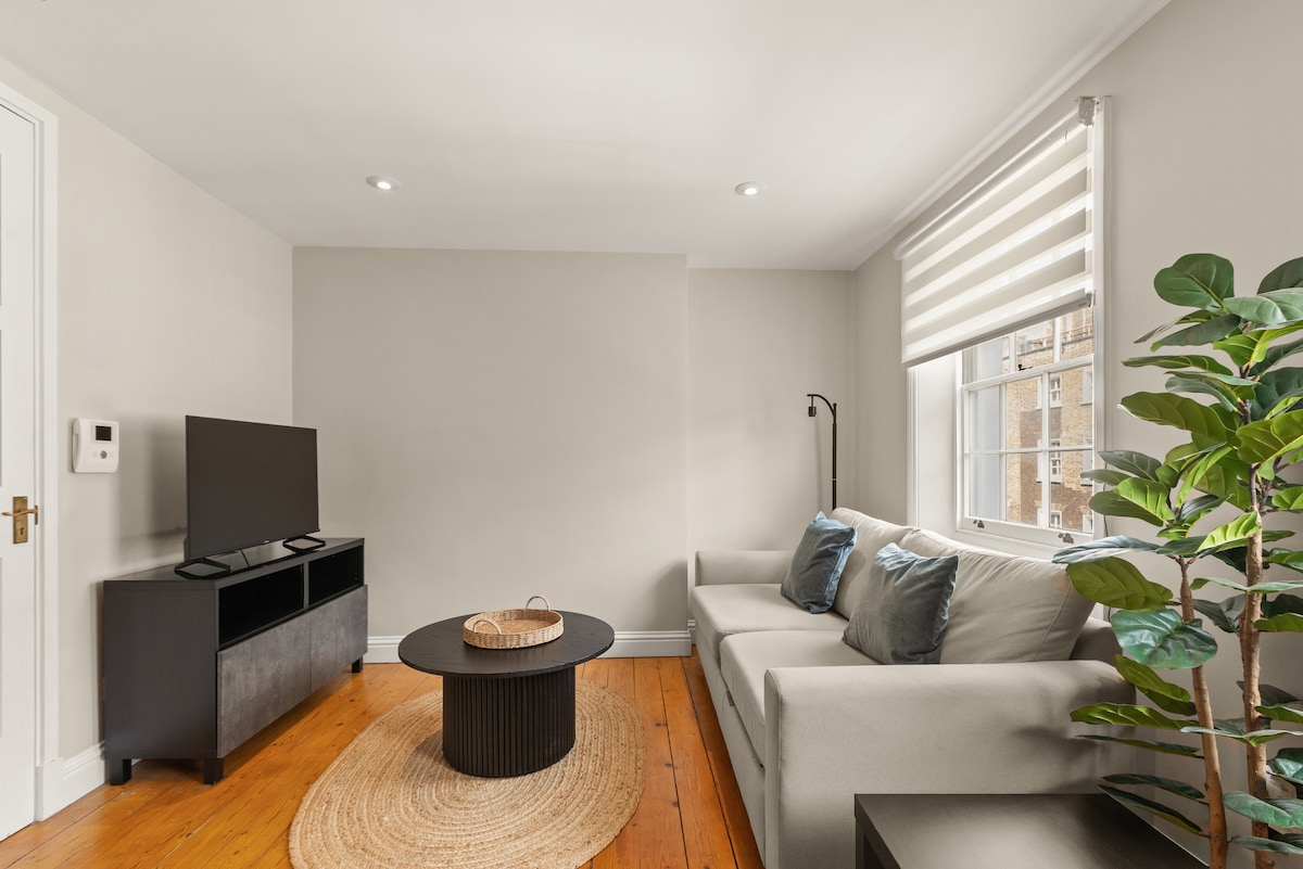 Enjoy a city break in this bright second-floor Fitzrovia apartment. Featuring a cosy bedroom, a bathroom with a bathtub, and a contemporary open-plan living space with a sofa bed, dining area, and fully equipped kitchen, it offers a peaceful and comfortable base in central London. Step outside and you’re just a 3-minute walk from Goodge Street Underground Station, providing effortless connections across the city.